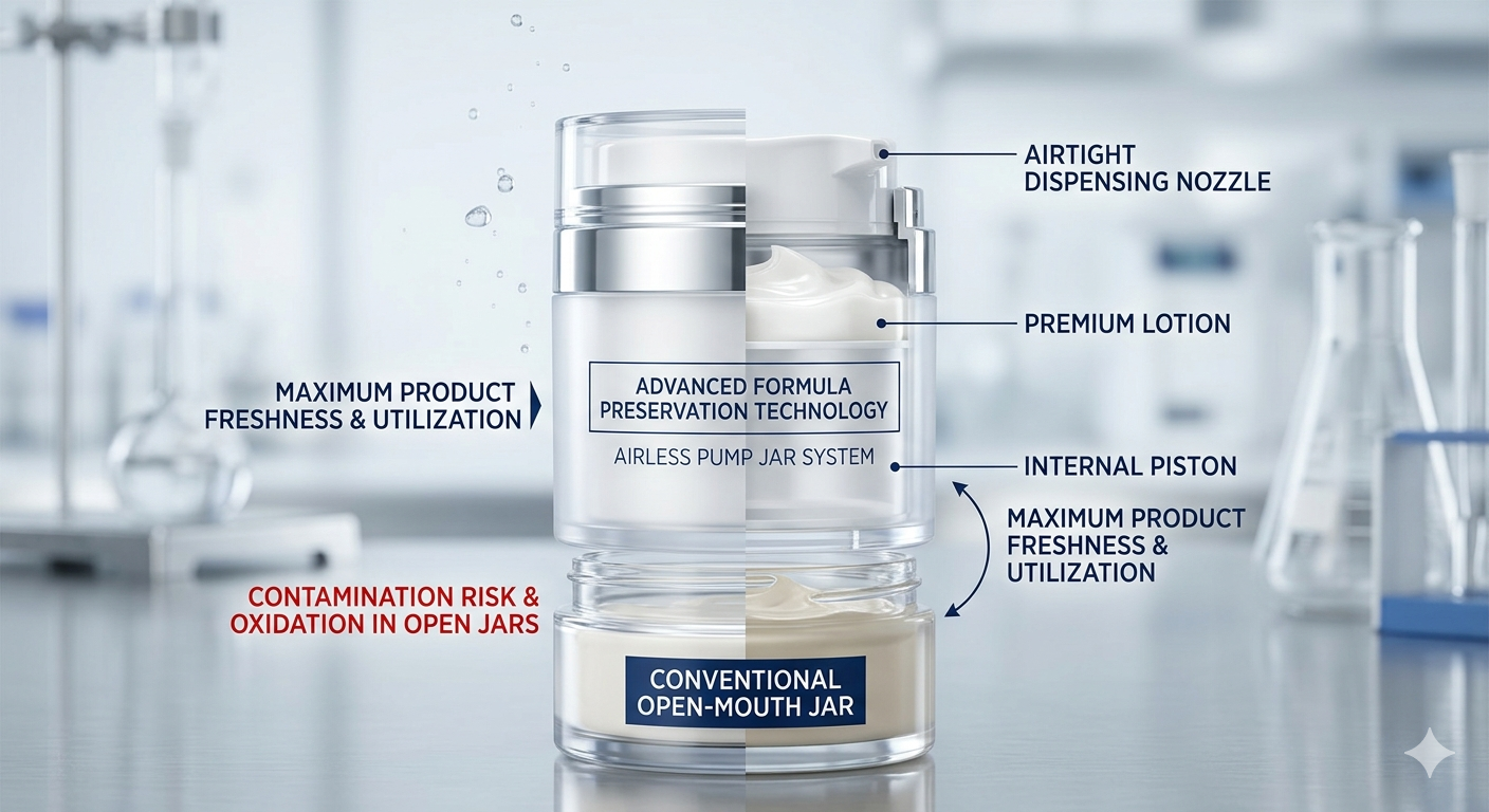 دلیل اصلی تغییر صنعت این است کوزه های پمپ بدون هوا به طور قابل توجهی عمر مفید محصولات مراقبت از پوست طبیعی و بدون مواد نگهدارنده را با حذف قرار گرفتن در معرض هوا افزایش می دهد. از آنجایی که مصرف کنندگان خواستار "زیبایی تمیز" با تثبیت کننده های مصنوعی کمتر هستند، بسته بندی باید نقش محافظتی را بر عهده بگیرد. شیشه های سنتی هر بار که درب آن باز می شود اجازه ورود اکسیژن را می دهند و منجر به تخریب سریع مواد فعال مانند ویتامین C، رتینول و روغن های گیاهی مختلف می شود.