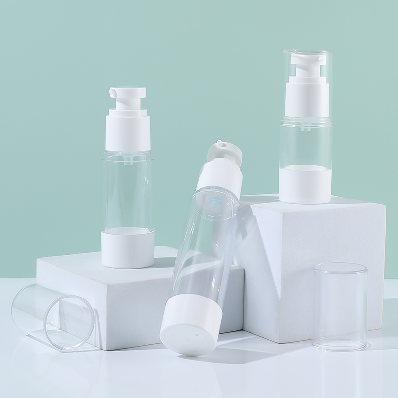 20ML 30ML 50ML AS PP مهر و موم شفاف پمپ آرایشی بدون هوا بطری HS-008B به دلیل آب بندی قوی، تازگی بالا و استفاده راحت، به بسته بندی ترجیحی برای محصولات با ارزش مانند اسانس، لوسیون، ضد آفتاب و غیره تبدیل شده است. این محصول از یک بطری خلاء شفاف ساخته شده از مواد AS/PP (ظرفیت 20ML/30ML/50ML) استفاده می کند که هم زیبا و هم کاربردی است و به طور گسترده در برندهای مراقبت از پوست متوسط به بالا استفاده می شود.